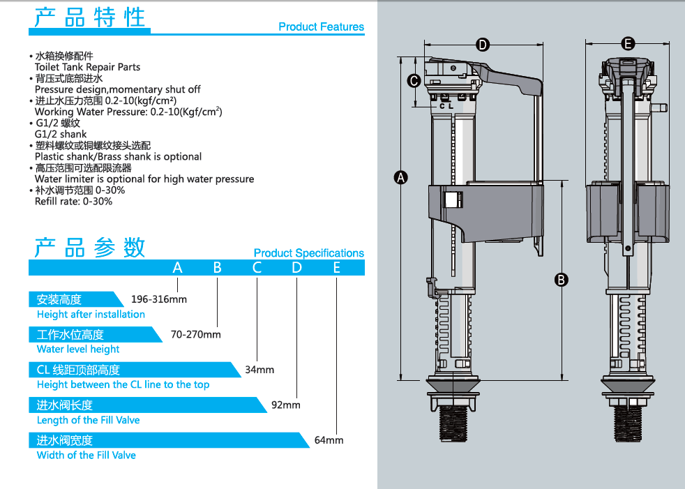 J108 Adjustable Fill Valve