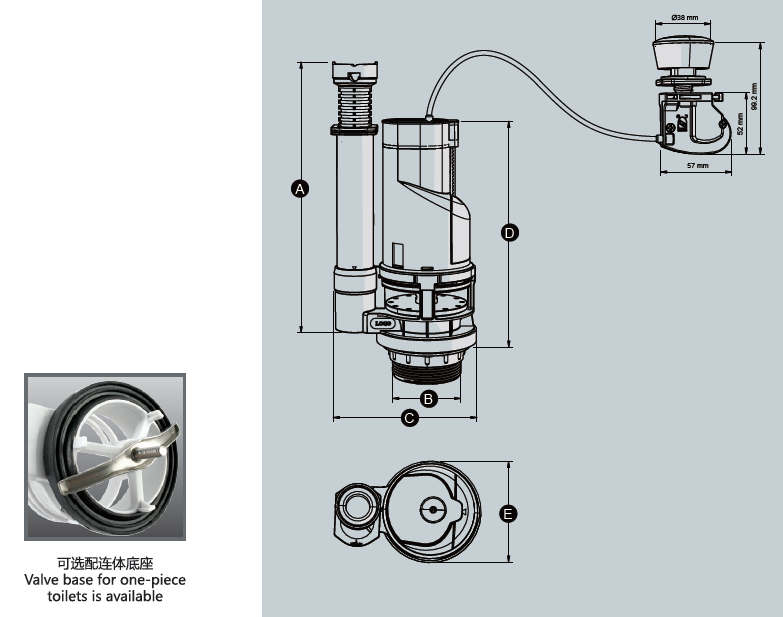 P301FK4 flush valve for two-piece toilet with push button